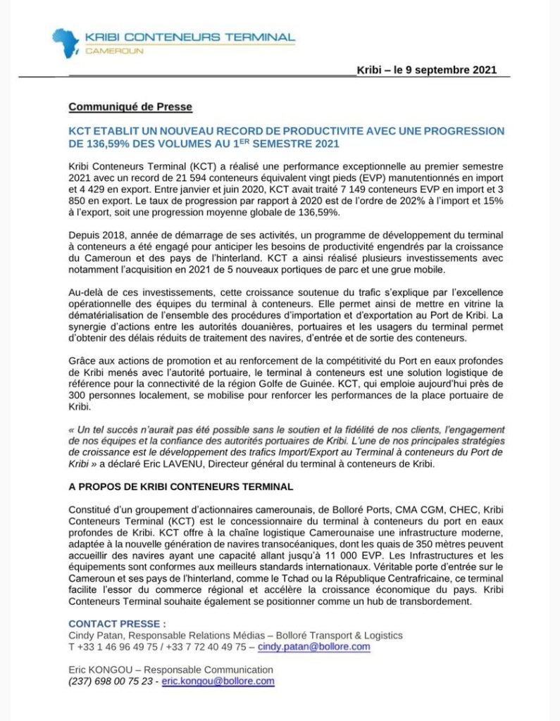 KCT ETABLIT UN NOUVEAU RECORD DE PRODUCTIVITE