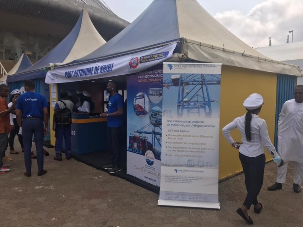 Kribi Conteneurs Terminal (KCT) a exposé son savoir-faire à la 10ème édition du Salon de l’action gouvernementale (SAGO) 2021 qui a eu lieu du 25 au 31 juillet 2021 à l’esplanade du Palais des Sports de Yaoundé. Le ministre de la Communication, M. René Emmanuel SADI, conduisait en tant Représentant du Premier Ministre, la délégation gouvernementale chargée de visiter les stands. Les équipes commerciales de KCT ont pu exposer leurs atouts commerciaux, les investissements mis en œuvre et les transferts de savoir-faire opérationnels et sociaux opérés par ses actionnaires de référence BOLLORE, CMA CGM, CHEC et les opérateurs privés camerounais. Les personnalités présentes et les nombreux invités ont pu apprécier les éléments qui concourent à faire de KCT l’un des terminaux à conteneurs dont les performances sont en hausse sur la côte ouest-africaine.